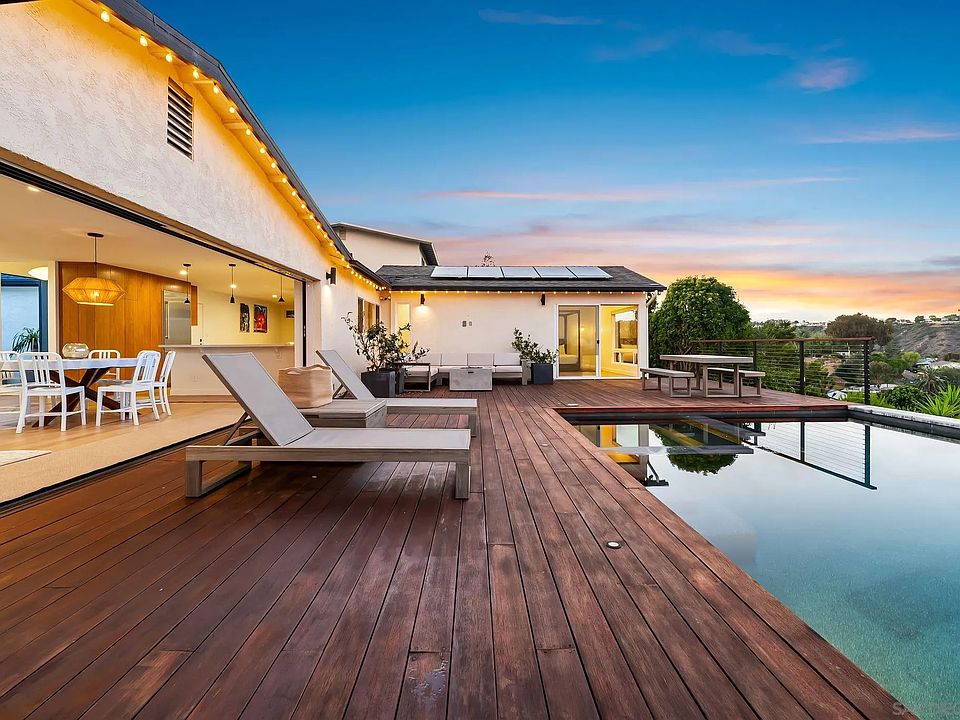 (Value Range $2,498,000-$2,798,000) Remodeled sanctuary perched on sunny Mount Soledad with panoramic mountain and city light views. This rare offering blends luxurious design, expansive sightlines, and exceptional value, where every space is thoughtfully oriented to showcase the natural beauty of La Jolla. Wake to sunrise over the mountains, unwind to shimmering city lights at night. Flow seamlessly between open-concept living areas, a chef’s kitchen, and a three-panel, fully retractable glass wall that opens to an expansive sundeck, heated pool, and integrated hot tub overlooking incredible views. The private side yard completes the experience with a full longevity spa: cold plunge, view-facing barrel sauna with picture window, and outdoor shower, designed for recovery, wellness, and renewal. Two oversized ensuite retreats offer walk-in closets and spa-inspired baths. A newer 18.25kW owned solar array, 13.5kWh battery, SPAN smart panel, and dual EV chargers (Rivian + Tesla) deliver effortless sustainability with intelligent infrastructure. Competitively priced for its level of finish, location, and amenities. Experience elevated, turn-key luxury living in San Diego’s premier coastal community. Both buyer and agent incentives available, inquire today! custom cabinetry throughout, vegetable garden, barrel sauna and cold plunge, ample storage, including a dedicated area beneath the pool.