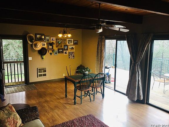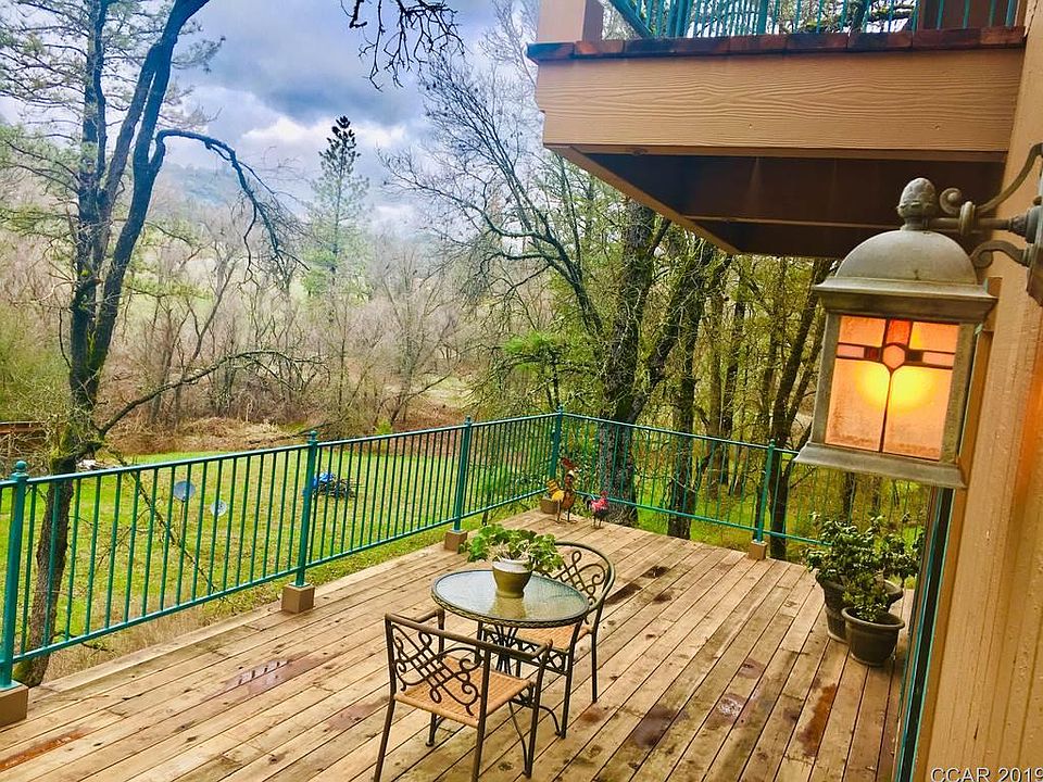 MAJOR PRICE REDUCTION! This fun home is located a few miles from National Forest land, yet less than 10 minutes from groceries and building supplies in Mtn Ranch. Walk down from the house to the creek, and you'll find a large deer-fenced garden area, and a large chicken coop along the way. The floor plan is very versatile with a bedroom on the main level, a huge finished room downstairs that could serve as family room, bedroom, mancave or hobby room. Upstairs is a large loft with its own bath that could be a master suite, two separate bedrooms, you name it, with its own balcony overlooking the property down to the creek. The attached 2 car garage has a drive through door on the backside. This home is in El Rancho Loma Serena HOA, and includes the use of the HOA clubhouse and guest rooms.