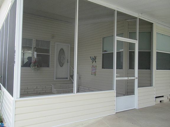 A 1995 Palm Harbor manufactured mobile home that that measures 1326 ft.² of living space. Two bedrooms and two baths. Sizes are not deemed legal but measured to the best of our ability. The home has a screen room that measures 11 by 13 ft.² which is 151 ft. Sizes are not are not deemed legal, but measured to the best of our ability. A very nice large spacious house with plenty of storage. The home is a perimeter private lot that is absolutely gorgeous. There's a galley kitchen with plenty of cabinets and counter counter space. The washer and dryer is inside the home. The home has a recently new roof, almost new air conditioner, new water heater. And just added new PVC piping throughout the home.