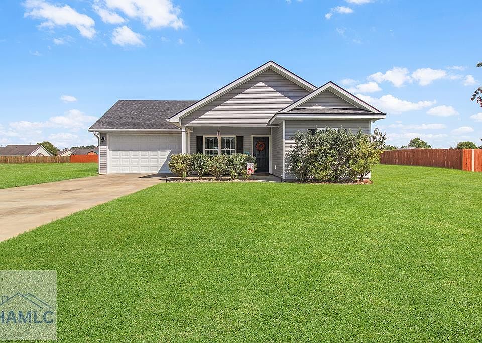 NO HOA! Sits on Half an Acre. This beautifully maintained 3-bedroom, 2-bathroom home offers stylish living space in a welcoming community. Step inside to a bright, open layout featuring fresh paint, luxury vinyl plank flooring, and abundant natural light. The living room is warm and inviting, flowing into a modern kitchen with gray cabinetry, stainless steel appliances, ample storage, and a center island perfect for meal prep and casual dining. Recess lighting is also a bonus. A dedicated dining area overlooks the backyard, making family meals and entertaining a breeze. The private owner's suite includes a large walk-in closet and a spa-like ensuite bath with dual vanities, a soaking tub, and separate shower. Two additional bedrooms provide flexibility for guests, family, or a home office, while the second full bath ensures convenience. Newer AC system is top of the line and only 2 years old. Outdoor living is a highlight with a covered patio, ceiling fan, and expansive backyard, Enjoy evenings by the brick fire pit. Not in a Flood Zone!