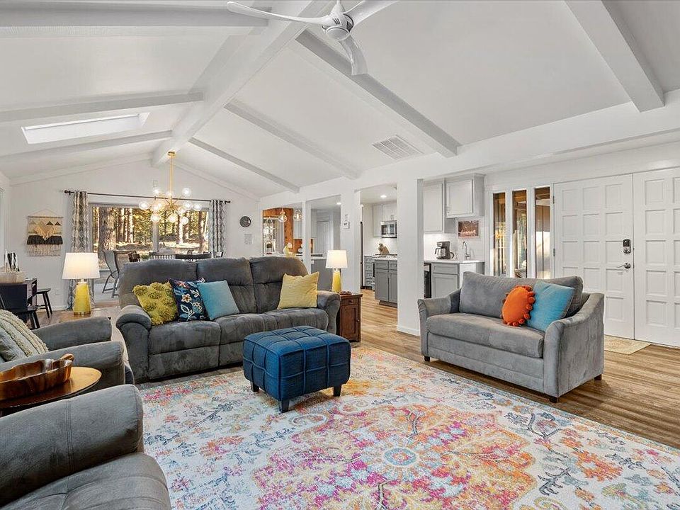 Single level updated 3 bedroom home in the heart of Sunriver. Tucked away from any busy streets in Sunriver and abundant common area out back, this home has everything you want or need. Modern kitchen updated with quartz counters, stainless appliances, 6 burner gas range for the chef in your life. Mini bar counter for your favorite beverages and the ease of entertaining. Open living space with gas fireplace for chilly nights and A/C for summertime. 2 Bedroom suites and a third bedroom with a full bath nearby. Newer hot tub on the back deck overlooking the large common space, perfect for star gazing and watching wildlife meander through the neighborhood. New roof in 2022. 2-Car garage. Don't miss this one!