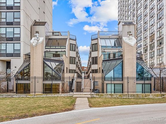 Peaceful beachfront lifestyle with the convenience of city living. This gorgeous 4 story townhome is situated in a quaint gated complex right on Lake Michigan. Fantastic Hollywood Beach, grassy parks and the lakefront path are steps away. Beautiful lake views and sunsets from your own rooftop deck, perfect for entertaining. Right off the rooftop deck is a mini kitchen area with additional storage. Lots of upgrades in this immaculate 3 bedroom, 2 bath lake home with a private heated 2 car garage plus storage included in the price! This truly move-in condition home includes stainless steel kitchen appliances, new kitchen backsplash, hardwood floors throughout, newly refinished and repainted fireplace mantle, newly painted walls and trim, new electrical and plumbing fixtures! Spacious and open living room with fireplace, dining room and kitchen with optional island. The second level includes a 2nd bedroom, in-unit washer and dryer, a newly renovated bathroom and the 3rd bedroom area, currently used as a family room/office. The huge primary bedroom suite occupies the entire third floor with its own updated bathroom which features a large skylight and double vanity sink. The primary bedroom also offers 2 large walk-in custom Elfa closets with tons of storage space. Enjoy workouts on the bike path or play beach volleyball right outside your door. Close to dog parks/beaches, paddle board and kayak launch, walking distance to bars, restaurants, shopping and transportation. Easy access to LSD, the express bus and the redline make it a fast commute downtown and beyond. There is nothing to do but move right into this impeccably maintained home.