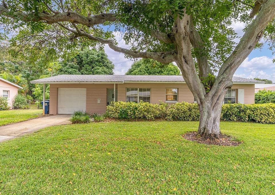 Price adjustment.....Wait till you see this beautiful 3 bedrooms 1 bath solid block home. You will love the beautiful shade tree in the front yard that welcomes you home every evening giving you a sense of peace. All the Terrazzo floors have been completely restored to a gorgeous lustrous shine. Lovely new vanity and mirror in the main bath. A New Gas hot water heater was just installed, located in the garage. The interior of the home has been freshly painted inside. The yard is easy maintenance with mature landscaping, including two of the lushest mature fruit-bearing Mango trees. The backyard is fenced, and with an irrigation system, there is plenty of room for a pool, playset, or trampoline, bonus is Fido will have plenty of room to run as well. This solid block home has central heat and air, a brand-new gas water heater, and an attached one-stall garage, with an automatic garage door opener. The laundry hookups are located in the garage. You will love the location of this adorable home, a 15-minute drive to St Pete Beach, minutes away from I 275, 30 minutes to Tampa Airport, very close to Eckerd College, fabulous restaurants, Downtown St Pete, and the Sunshine Skyway Bridge.