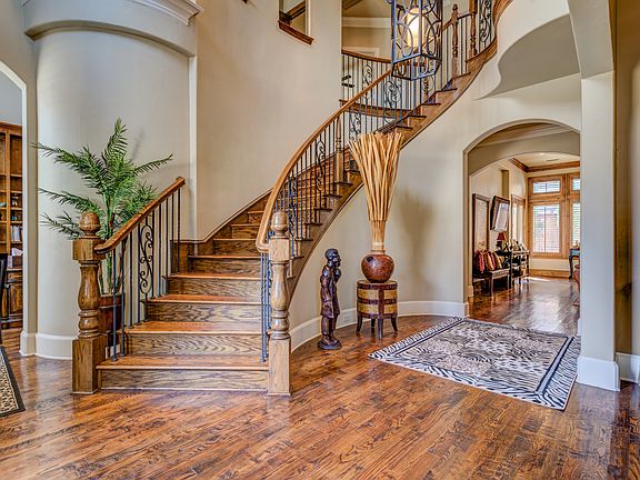 A Grand Entry featuring a Wood Staircase with Iron Ballasters complemented by a Beautiful Iron Chandelier. An Amazing 2 story Study with a Wrought Iron Staircase leading to the 2nd Floor Library! Home Features 4 BR, 4.1 Baths, Media Room, Game Room and Beautiful Pool with Spa. Lovely hand scraped Hardwood Floors. Iron fixtures thruout, hand troweled walls, Designer Colors. Gorgeous Kitchen with Professional Grade Appliances and Granite countertops. End Your Day in the Oversized Master Bedroom with a Spa like Bath. All Secondary bedrooms are oversized. The pool features Hot Tub with 12 jet lay down and stand up accented with Mediterranean pebble color finish. 2 Minutes from DNT
