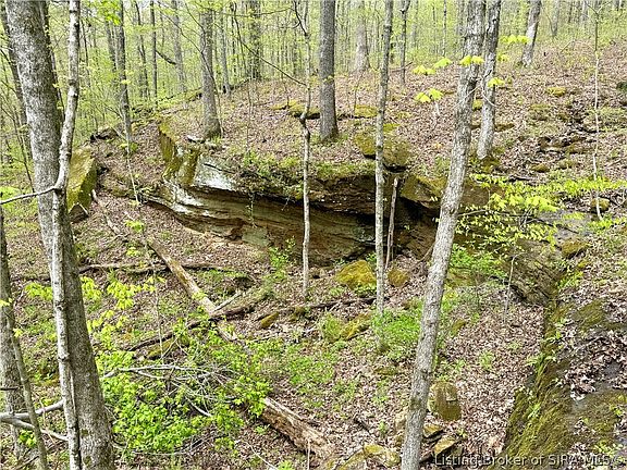 Situated in Crawford County and surrounded by Hoosier National Forest is this great outdoor tract. This property has just undergone a light timber harvest, with a few logging trails recently opened up for ease of maneuverability. It is located just around the corner from Hemlock Cliffs and to thousands of acres with public access for hunting and hiking. Currently, there is a home that is NOT livable on the property. There is, however, a large pole building in good shape. The open and cleared area contains about 1.5 acres and is divided by the driveway, offering space for multiple residences. The forest acreage is rolling, with funnels and valleys. These crevices are made up of some beautiful, natural rock croppings and formations, with several having a slow trickle of water cascading over the moss back into the ground—all great spots to catch deer traveling, with noted deer trails and tracks all over the property. Public power, water, and a septic tank are all on the property and available for immediate hookup. This property is very remote and private, but yet 15- 20 minutes from State Rd 37, Interstate 64 and Patoka Lake boat ramps.