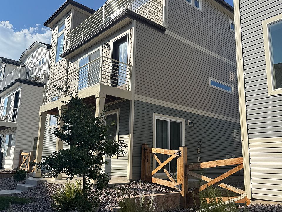 Almost new townhouse in Banning Lewis Ranch ready immediately! 3 bedroom, 2.5 baths and 2 car attached garage. Property has Central AC, 2 balconies, master bedroom suite with private bathroom and walk in closet. Kitchen has granite counter tops, brand new stainless steel appliances and new washer and dryer. Brand new carpets, wood flooring and paint! Property also has bonus room that can be an office or additional living room/game room in lower level and upper level also has large loft that walks out to balcony. Garage is over sized with room for 2 cars and additional storage in bonus side bay. Very close to Peterson AFB and a close commute to Schriever AFB and Fort Carson. Rent also includes recreation center access that has pool, fitness center, pickle ball court and exercise classes!