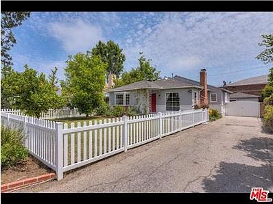 NEW PRICE for this Sherman Oaks starter home complete with a white picket fence in sought after Kester Avenue Magnet School District! This light filled residence boasts gleaming wood floors, a mantled fireplace and freshly painted walls ready for choice artwork. The kitchen has newer cabinets, vintage tiles & stainless steel appliances. Extra spacious bedrooms feature stylish bay window accents, handsome wood flooring, and generous closets. The den is used as a 3rd bedroom, but this could be made into a fabulous master bathroom. Bonus room with recessed lighting, A/C, and new carpeting, which creates an ideal work space or future recording studio. Outside enjoy throwing your own loud parties under a covered patio that has circulating air fans, a grassy yard for your pets & children, and storage areas. Located just minutes away from transportation, the 405 & 101 fwy, coffee shops, shopping & dining!