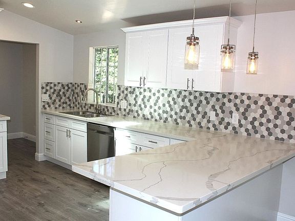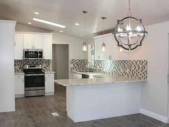 A wonderful REMODELED HOME situated on TWO AMAZING ACRES in a super quiet serene park like setting. This 1,560 sq. ft. 3 bed/ 2 bath home FEATURES EVERYTHING! NEW custom quartz kitchen, NEW Appliances, NEW custom white kitchen cabinets. NEW custom vanities, NEW custom showers, NEW custom laminate & tile flooring throughout. FRESHLY textured imperfect smooth walls. NEW designer LED lighting plus designer light fixtures and fans. newer roof, NEW custom designed trex decks front and back. Large detached 2 car garage with oversized paved driveway & RV parking. Almost too many amenities to list here! There is a lot of flat usable land on this property. It is just 5 minutes from the lake. This place will astound you. An absolute must see, especially if you want a turn key move in ready home!