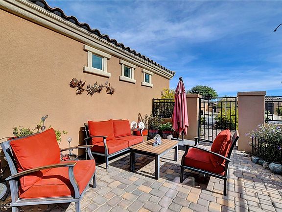 AGE RESTRICTED 55+ Resort Style Living. Gated. Prepaid Solar Panels. Extended Garage for Larger Trucks , Golf Cart or Extra Toys. Close to New State of The Art VA Hospital and Shopping. Easy Access to the 215 and I-15. 3 Bedroom and 2 Bathrooms. Upgraded Floor Tile. Top Down - Bottom Up Blinds Throughout. Primary Suite has Double Sinks, Shower with a Seat, Large Walk In Closet. Open Floor Plan. Chef's Kitchen has an Eating Area with Plenty of Space for a Table Overlooking the CourtYard. Granite Counters, Island and a Pantry. There is also another Separate Dining Area off the Great Room that Accommodates a Large Dining Table. Guest Quarters with 2nd Bathroom that has a Shower/Tub Combination. Large Pool Size Yard. Covered Back Patio with Pavers for Entertaining. Prepaid Solar Panels Transfer to New Owner at No Charge