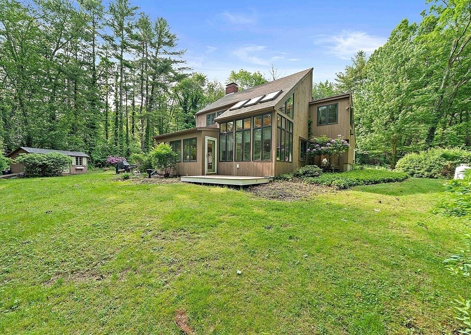 Experience exceptional privacy and tranquility at this 3-bed, 2-bath contemporary retreat on over 4 acres in Scituate. Tucked far from the road and surrounded by mature trees, this home offers unmatched peace and quiet. The open layout features vaulted ceilings, skylights, and a sunlit living space that blends beautifully with the natural surroundings. The main level includes a first-floor primary bedroom and full bath for easy living. Enjoy serene outdoor space with a wraparound deck, storage shed, and a whole-house generator—all just minutes from Scituate Harbor, beaches, and the commuter rail.