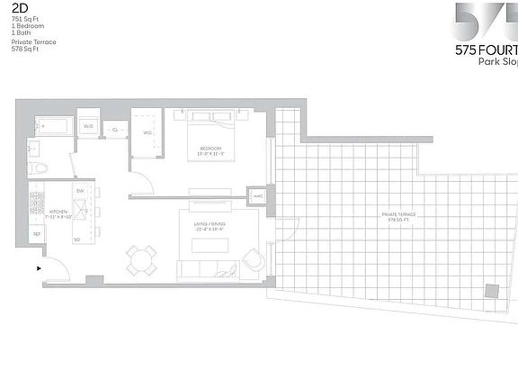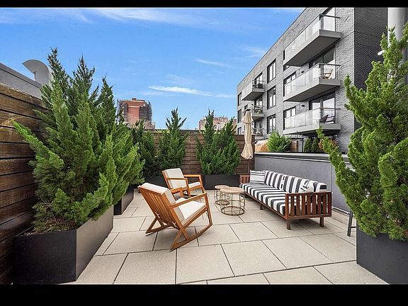 Posh serene sun-filled home, massive and bright private attached outdoor terrace facing the interior of the building, for quiet enjoyment. Theapartment features beautiful and modern finishes throughout, floor-to-ceiling windows and walnut cabinetry, quartz countertops, a marble spa-like bathroom and walk-in customized closet and king-size bedroom. Located in vibrant South Park Slope. The private backyard space abuts oneof the building's two common outdoor spaces, the building amenities include an attended lobby, fitness center with Peleton bike & yoga studio,playroom, music practice room, game room & modern resident lounge with workspaces. Common roof deck, featuring dining area with BBQ grillsand views of Brooklyn, Manhattan and more. Interior great lawn, trellis-covered dining area with BBQs, fenced playground and separate fenceddog run, guaranteeing privacy and quiet in the unit.