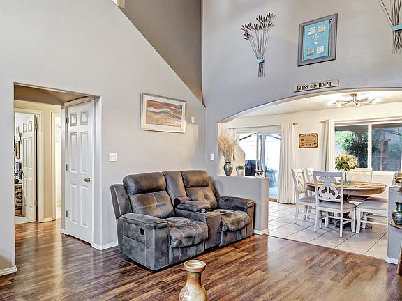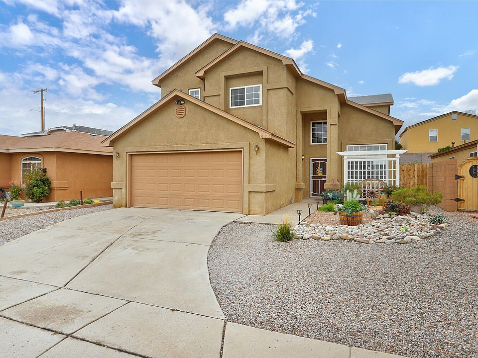 Beautiful two-story home featuring a seamless flow from room to room. the kitchen features an island and lots of cabinet space. Step outside to a stylish covered patio, The landscaped backyard boasts low-maintenance turf, a time-saving drip system, and plenty of space to relax or entertain. Whether hosting guests or enjoying a quiet evenings, this yard offers privacy and charm. The upstairs primary suit features a separate shower and tub, A spacious walk-in closet. Recent updates include a newer roof, water heater, and evaporative cooler, making this well maintained home is a prefect blend of comfort, style, and practicality!