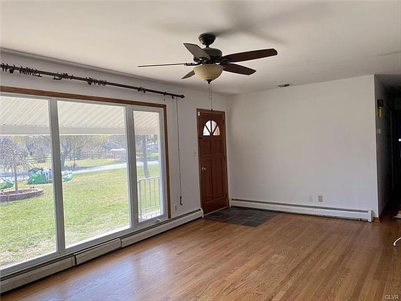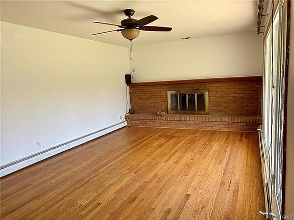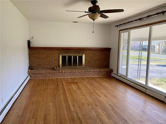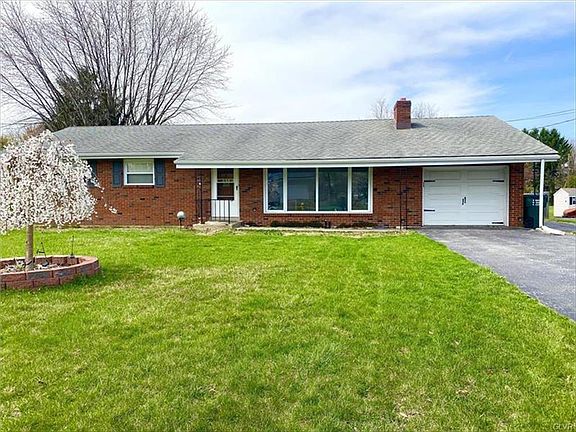 An inviting brick ranch home in Lehigh Twp. The home sets on a nice level lot with a fenced back yard. Enter from the covered front porch into the living room. Nice hardwood floors and a wood burning fireplace greet you along with plenty of natural light that streams in from the picture window. Spacious eat in kitchen with a view of the back yard features new counter tops, newer flooring and plenty of cabinets. Dishwasher, refrigerator, built-in microwave and range all stay! 3 bedrooms plus a remodeled bathroom. The back yard has a covered patio overlooking the fenced yard. Central air and one car garage too. The basement has a finished area with a dry bar and pool table. The unfinished area contains the oil heater, laundry and additional toilet and shower. There is a bilco door to the rear. Minutes away to Blue Mountain, parks, trails, schools and shopping. Online/virtual showings only at this time. Call with any questions.