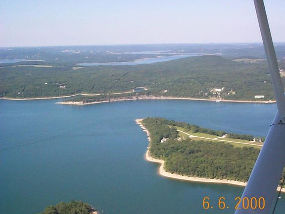 60x50 Hangar and Lakefront Lot Combo!! Enjoy Table Rock Lake by air & water. Fly in to your very own lake retreat. The Peninsula is a gated fly-in community with a 2800' well maintained grass airstrip, right on Table Rock Lake. This 60x50 red iron hangar building has 3 bedrooms, 3 baths, living , kitchen and large open hangar space. Finished with wood interiors and 50ft wood hangar bi fold electric door. 20+ft interior ceiling fan, central HVAC for all living and bedroom areas . This hangar building is priced including an acre lakefront lot #28 with gentle slope into the water.