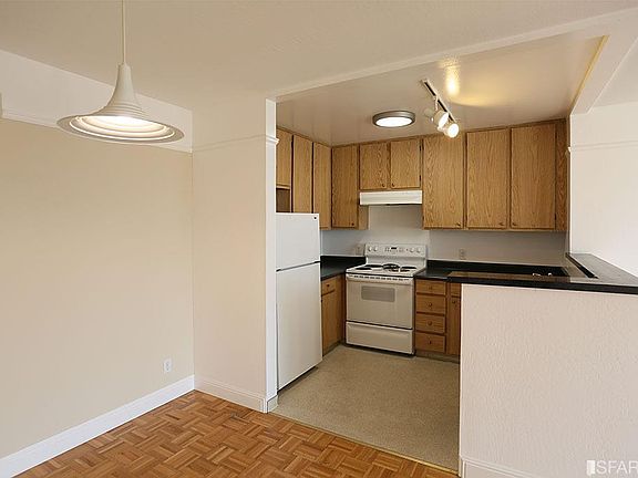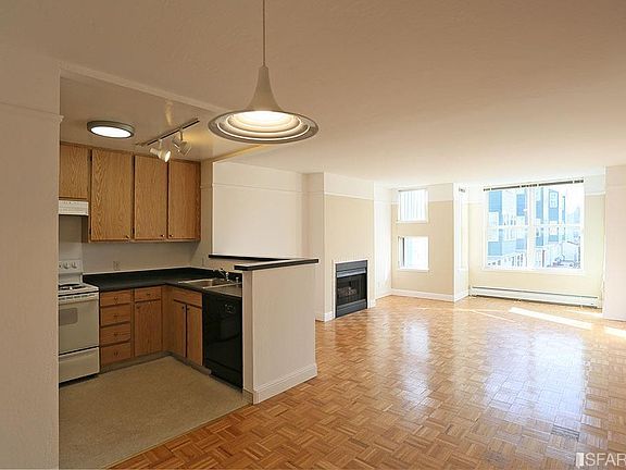 Contemporary, third floor 1BR/1BA in Cole Valley/Parnassus Heights. Floors are hardwood except in kitchen and bath. Long living room has two banks of windows at one end, the fireplace along the side, the dining space with the kitchen behind it at the far end. Kitchen includes an electric stove, dishwasher, and has a breakfast bar-style counter seating three dividing it from the living room's dining space. Living room also has a closet with sliding mirror doors. This unit is a rental unit subject to the San Francisco Rent Ordinance, which limits evictions without just cause, and which states that any waiver by a tenant of their rights under the Rent Ordinance is void as contrary to public policy.