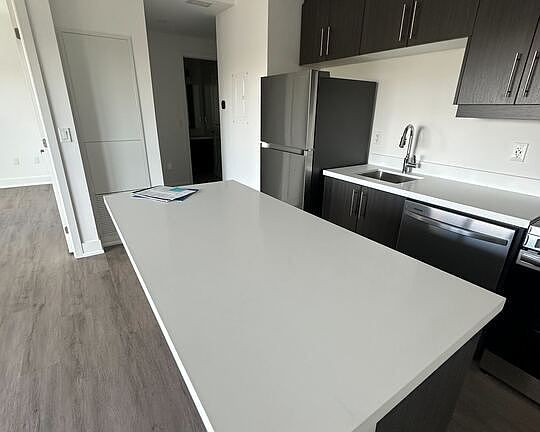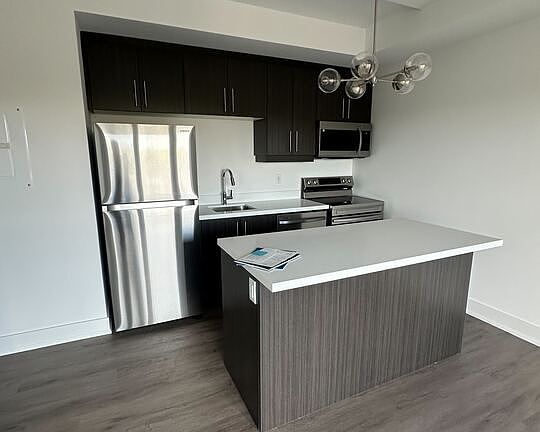 Welcome to this brand new 1-bedroom suite in The Ambrose Condos, offering contemporary living in one of the area's most vibrant and rapidly growing communities. This thoughtfully designed home features an open-concept layout with a bright living and dining area that extends seamlessly to a spacious balcony, perfect for relaxing or entertaining guests. The sleek kitchen is outfitted with quartz countertops, stainless steel appliances, and a central island for both style and convenience. Enjoy soaring 9-foot ceilings, large windows that flood the space with natural light, and the added benefit of in-suite laundry. Ideally situated just minutes from major shopping destinations, scenic parks, public transit, and everyday essentials, this modern residence combines comfort, design, and a prime location in a dynamic, newly built community.
