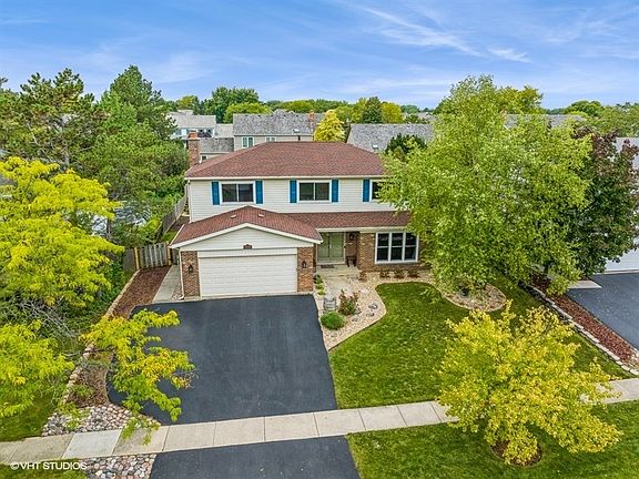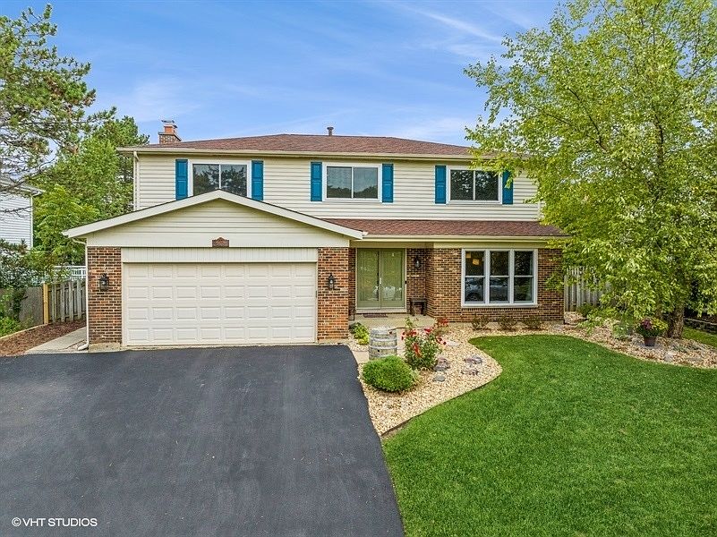 Multiple Offers Received- Highest and Best due by 6pm Monday October 9th. Welcome to this beautiful, spacious 5-bedroom home in The Orchards with many special features! The double-door entry and open foyer create a welcoming ambiance. The main floor features a living room, dining room, a half bath, and a spacious island eat-in kitchen with granite countertops, updated backsplash, pantry with pull out drawers, hidden trash can cabinet, and stainless steel appliances. The cozy family room has an adorable brick fireplace and NEW slider door that offers a view of the professionally landscaped garden, yard, and concrete patio. The attached 2-car garage conveniently leads into the laundry/mudroom area, equipped with a newer Electrolux washer and dryer. All five bedrooms are situated upstairs, along with a full bath featuring double sinks. The oversized master bedroom boasts a walk-in closet, a secondary husband's closet and a lovely tiled full bath with custom cabinetry. The house also features newer roofing and $30000+ new windows, providing ample natural light. Additionally, there's plenty of storage space with many closets throughout the home. The basement, complete with a fireplace, enhances the charm of this exceptional property. The fantastic location with top rated schools and quick access to shopping, lake and dining options, makes it a highly desirable place to call home. Home Warranty INCLUDED.