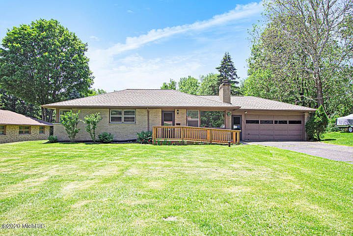 Welcome home to this brick ranch 2 car attached garage on almost an acre lush lot in Plainwell school district. Peaceful area with lots of wildlife but convenient to both Kalamazoo, Plainwell, and Otsego. Recently refinished hardwood floors, custom maple cabinets and clean dry basement ready for your finishing touches. Newer roof, newer forced air, and a great fireplace and living room. This is a very desirable and pleasant neighborhood, schedule your showing now!