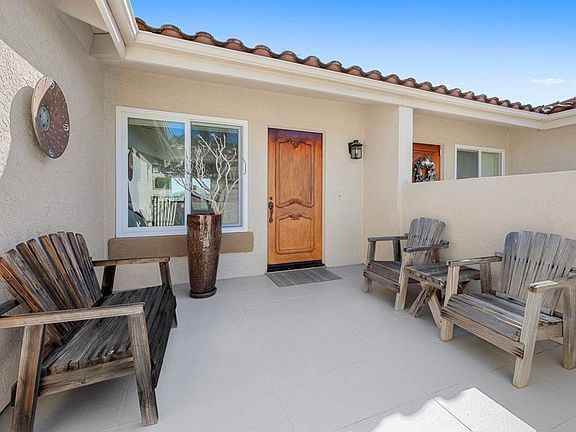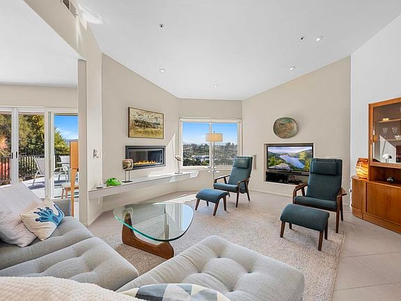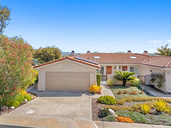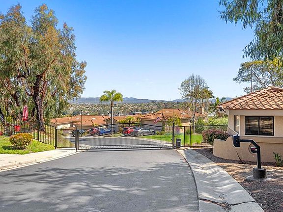 Charming view twin home nestled in a small gated enclave of 22 homes with panoramic breathtaking backcountry views. Perfect quiet location in the complex at the end of the cul-de-sac. Open floorplan with high ceilings, skylights, gorgeous oversized tile flooring, connecting the updated contemporary kitchen with granite slab & back splash to the dining area and the cozy living room which has a new fireplace. Wonderful large view patio/deck located right off main living area offers amazing “see forever” views overlooking mountains and beyond which is perfect for entertaining /hosting family & friends. Two oversized ensuite primary bedrooms, both with updated modern contemporary style bathrooms. The private low maintenance back and side yards offer complete privacy and a wonderful area to enjoy San Diego’s wonderful weather. Home has paid solar and lives like a detached home with private entry courtyard and private rear yard. Centrally located right in the heart of Encinitas within walking distance to major shopping centers, dining, and local trails yet freeway and beach close.
