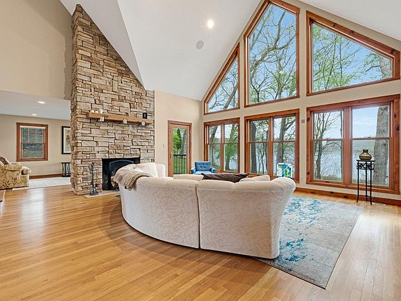 Come see your new 5-bedroom lake home nestled on over 1 acre in this 1-of-a-kind location. When you drive through to get to your new home, you will swear you’re entering the Upper Peninsula. Look to your left and right when you drive through and you’re guaranteed to see deer and other wildlife, making you feel like you’re entering a Disney movie. Should you start singing? I say…yes. On your left as you’re driving down the first road, there is an entry to the hundreds of acres of trails you can enjoy. Look to the right and you’ll see an area packed of fun. Enjoy the combo tennis/pickleball/basketball court, gather at the pavilion or wander down to the lake. Head over to your new home and you will feel like you have your own private retreat…AND YOU DO…With 360 feet of private lake frontage, your home is perfectly nestled in front of a crystal-clear lake (80' deep at its deepest point), you'll have direct access to excellent fishing (bass, crappie, pike, and walleye), swimming, paddleboarding and boating. You’ll keep the lake it’s “pristine best” by using an electric or trolling motor to navigate. As you enter the home, you will realize the possibilities! There is so much room to entertain, you can choose quiet time with your favorite person (that could be a person, a drink or yourself ??) or entertaining…as this property gives you more than enough room for both inside and outside entertainment. Just a few of the features include whole house surround sound, a home theater, kitchenette, and game area in the basement. Million-dollar panoramic views of the lake and forest from nearly every room gives so much natural lighting, you won’t need the lights! There are two lakeside decks, and a walk-out patio that will help bring peace to your soul. This custom home has been professionally remodeled from top to bottom! There are 2 bedrooms on the main level, 2 on the upper level and one in the basement. You have so much room you could spread out or if you want main level living, this would work…as your laundry is on the main floor! Nice sized pantry, utility sink in the laundry area, office/additional living space above the far detached garage, water filtration and so much more to explore! Who would think you’d get all this at this price? Stop buying yourself a house and come see this whole experience. You CANNOT find this combination anywhere else. This home is perfect for those seeking peace, adventure, or a bit of both!
