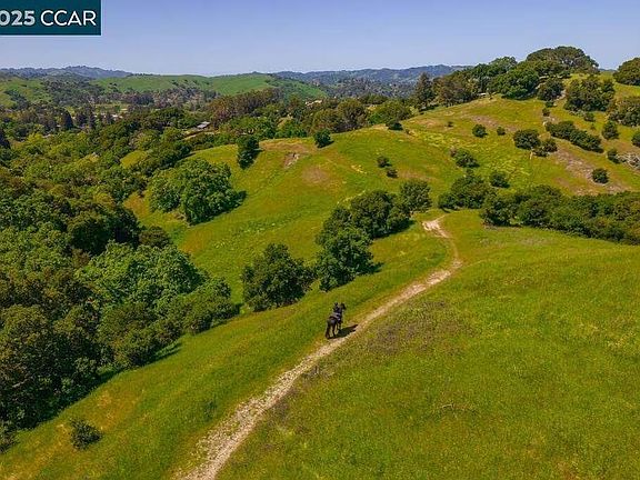 3,000 sq. ft center-aisle barn with 8 stalls, 8 paddocks, tack room, feed room and storage. A covered and lit round pen (54 diameter) allows for year round exercise in any weather. Fully fenced and cross-fenced pastures. A horseman's paradise with direct access to miles of trails and the open expanses of Las Trampas State Park.