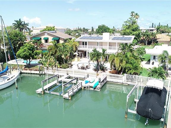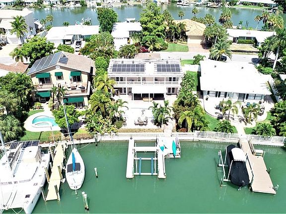 PRICE REDUCED....THIS IS A GREAT DEAL for this much house on the water....BRING OFFER....Imagine living in a Luxury Waterfront 2 story home with 64 ft. Water Frontage with dock and 10,000 lb. Boatlift on Sailboat Water. Walk out of the master bedroom and have your morning coffee on the 28ft. balcony overlooking the saltwater pool and the canal, or go downstairs and have breakfast by the dock. The house backs up to Intercoastal Waterway. 5 minutes by boat to the Gulf of Mexico. Take a 7 minute walk to Madeira Beach for all the shopping and restaurants available on Gulf Blvd. Hop into the jacuzzi or sauna and relax after work. This Luxury 4 bedroom home has 2 master suites upstairs with walk in closets and a number of skylights. One of the master suites has a huge walk in closet and a bigger storage area behind it. One first floor bedroom with ½ bath is currently set up as a media room. The other downstairs bedroom can be used as a private suite since it has French doors opening out to the pool area (great for guests), a full bath with luxury jetted tub and separate shower. This area is very versatile with an office/sitting room area, storage and walk in and through closet. First floor also has an area with a wood floor that would be perfect for a dance or yoga studio. The home has ceiling fans throughout, tons of storage and closets plus many upgrades.....Did I mention the gourmet kitchen? This is Madeira Beach Living at it's Finest!