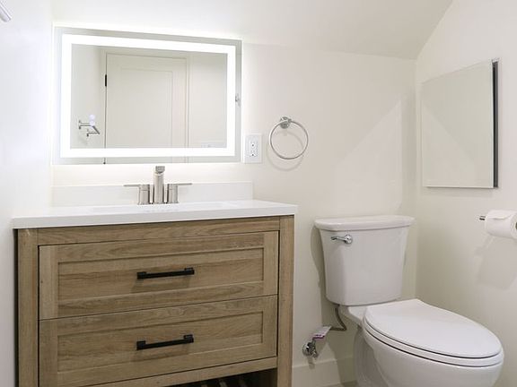 Ground floor studio in a single family home in South San Francisco. Unit is newly remodeled with new floors, heating, appliances, and paint. Floor is hardwood except in bath. Heat and air conditioning are provided via heat pump. Apartment is entered from the side yard through the garage. Kitchen is located in one corner. It includes electric stove top with hood, and half-size refrigerator. Stylish bath has a shower stall.