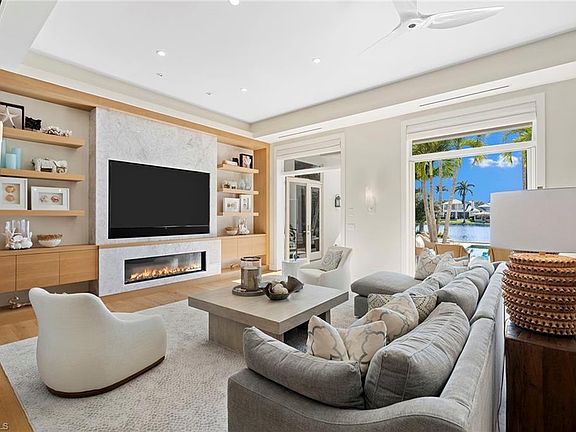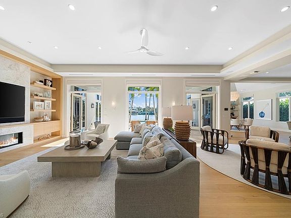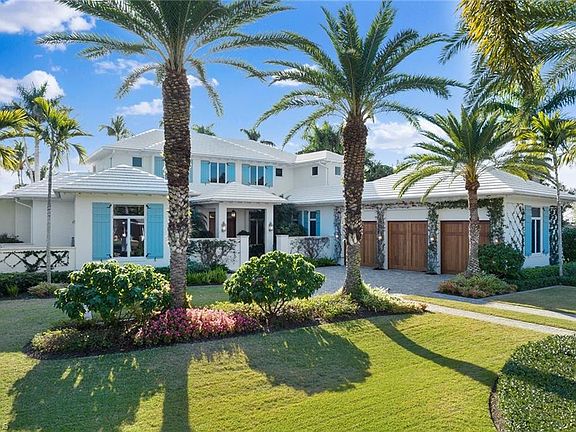 Located in the highly desirable Palm Circle neighborhood, this beautiful home designed by Kukk Architecture is a short four-block distance to the beach. With wide water, western lake views, this residence features spacious open living areas and a large gourmet kitchen. The home has five bedrooms and five baths, plus powder and pool bath and is 5,168 square feet under air and 7,033 square feet under roof. Additional features include an Artcraft designed kitchen with a Cristallo quartzite large center island, Wolf and Sub-Zero appliances, custom designed Legno Bastone wide-plank French oak wood flooring, upgraded plumbing fixtures, custom-built cabinets, lighting and millwork. Exterior features include a large outdoor living area, electric rolldown screens and shutters, outdoor kitchen, Philippine shell-stone deck, mahogany garage doors and mahogany front door. Construction consists of concrete block on both levels, a full-home generator, home automation, and impact doors and windows for storm protection. Enjoy breathtaking Naples sunsets while sitting at the picturesque pool area, overlooking South Lake. This one-of-a-kind property provides the ideal resort-style experience in the heart of Old Naples with proximity to 5th Avenue South and Third Street South.