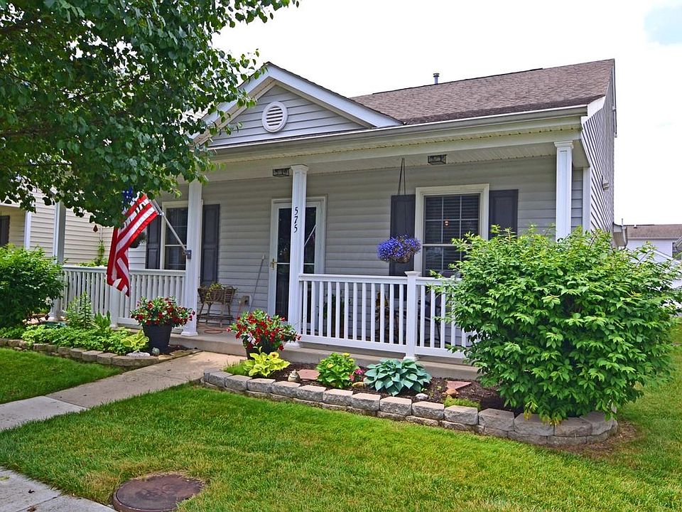 Welcome to carefree living in this gorgeous, well cared for home located up front & overlooking the pond. Spacious LR has cathedral ceiling & gas fireplace. Fresh paint, flooring & wood blinds throughout. Large master bedroom on 1st floor with huge walk-in closet & en suite bath, walk-in shower. Upstairs bedroom has big closet & full bath plus a loft for your office or extra guests. Updates in the kitchen: solid countertops, cabinets, industrial disposal, over sized porcelain sink, deluxe dishwasher, microwave, stainless steel fridge, & vertical wood blinds. Sliding glass doors lead to a paver brick patio surrounded by beautiful landscaping. Two car garage is extra deep & all shelving stays. Larger air-conditioner installed. Enjoy relaxing on the porch & see egrets, green/blue herons.