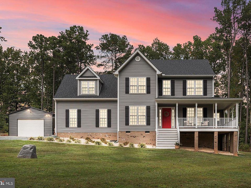 Exquisite home set on 2.16 acres with tons of curb appeal, many upgrades, and a location that can’t be beat! Offering 2,333 finished square feet, this home features 4 bedrooms, 2.5 bathrooms, and high-speed Firefly fiber internet. Enjoy the seamless flow of Luxury Vinyl Plank flooring throughout the main level, designed for both comfort and entertaining! There is plenty of space for everyone with a living room, dining room, and a spacious family room that opens to the kitchen with a center island with seating, granite counters, stainless steel appliances, and not one—but two pantries! Upstairs, the primary ensuite features a tray ceiling, walk-in closet, and a walk-in shower. Three additional bedrooms, a full bath, and conveniently located laundry complete the second floor. Enjoy outdoor living with a charming wraparound covered porch, perfect for morning coffee, and a back deck ready for summer BBQs. The whole-house Generac generator (2023) and 4–5 person hot tub (2023) both convey, along with the washer and dryer. This property also offers a 2-car attached garage plus a 20x20 detached garage with a 10x20 lean-to, complete with electricity, ceiling fan, wood-burning stove, and TV that conveys—all on a concrete slab—making it the ultimate man cave, workshop, or storage space. Beautiful exterior landscape lighting adds the perfect finishing touch. All of this just minutes from everything you need—5 minutes to Zion Crossroads, 15 minutes to Pantops, and 30 minutes to Short Pump—making this the perfect balance of tranquility and convenience. Your dream home awaits! (Please note: Magnolia tree will be removed prior to closing.)