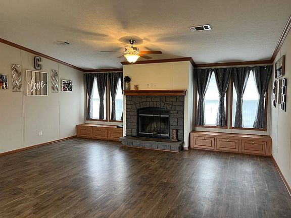 NEW PRICE $205,000. FT JESUP COMMINITY: This incredible 2008 model manufactured home has approximately 2,432 square feet for your family to grow into. Walking in to this over sized living room with vaulted ceiling and wood burning fireplace, you know from there it feels like home. The kitchen is great for the chef in the family, and everyone else for your holiday gatherings. An abundance of cabinets, plus a nice sized pantry. This floor plan flows great for families from the living room into the kitchen. The Primary bedroom has room for that king sized bed and more. With the adjoining bathroom, you have a soaking tub, separate shower and double vanities, with an enormous walk-in closet. There are 3 additional bedrooms and 1 additional bathroom. Bonus room that makes a great kids gaming area, or an area for mom or dad to utilize. Just minutes from Many but still you are in the country, with very low traffic. The seven acres +/- are just what every outdoor family needs. Room to ride, garden, relax around a fire pit and more. There is a two car metal carport on a concrete slab with concrete walkway for parking and an additional metal carport cover for storage. Great sunsets and cool breezes from this property.