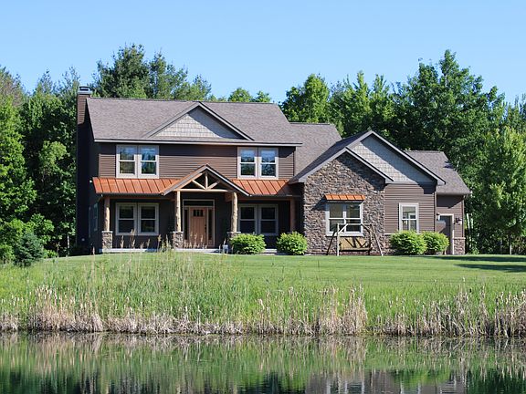 Saginaw County one of a kind! Located in Thomas Twp this secluded 3100' 5 bed 5 bath home with 3 car attached garage sits back off the road on over 55 beautiful acres! Built in 2018, this custom home features granite counters, copper stamped sink, commercial grade appliances, hickory cabinets, walk-in closets, fireplace and a bonus room with separate stairs for access! The 1188' basement can be accessed from the garage or in the house and features 9' ceiling height and separate climate control. Outside the covered porches allow gorgeous views of the 30' deep stocked pond with beach.