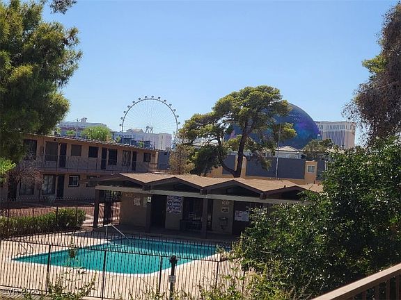 Enjoy stunning views of the pool, Strip, High Roller, and Sphere from your unit. Recent upgrades include a new HVAC and water heater (2023). Assigned covered parking, community pool, and beautifully maintained common areas. Unbeatable location—less than 2 miles from UNLV, the Strip, and 2.2 miles from the airport. Just 1.1 miles to the Convention Center and close to dining, bars, and public transportation.