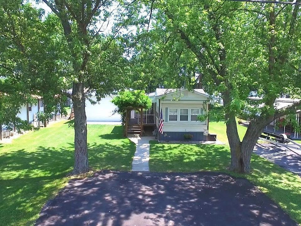 Welcome to Nugents Canal - full time living community - with 40ft of dockage out the front with a new dock that will accommodate a 27ft boat. Tastefully decorated with an open concept living space. Appliances remain in the eat-in kitchen. Two spacious bedrooms with closets accompany an updated full-bath. Screened-in porch for enjoyment. Park your toys in the 28x19 over-sized garage with a 10ft door by 16ft wide in addition to the 11x12 workshop and detached shed for storage. Rear yard for Lake fun! Steps to Nugents Canal Yacht Club and around the corner from the Lagoon Saloon. Numerous updates include: skirting, septic aerator motor, 8KW standby Auto-matic generator, install of water and electric lines to dock, central air, floor coverings and paint. Roof and furnace 2005. Just move on in and relax. See it today, you'll be impressed!
