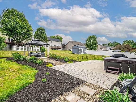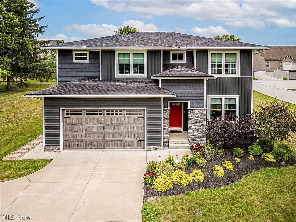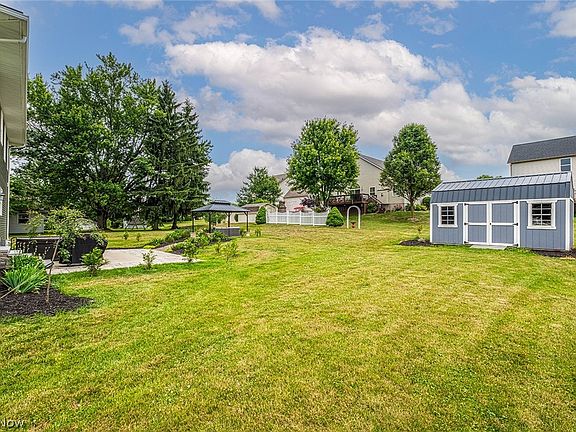 MOVE-IN READY!! Custom Craftsman home built in 2019 with detailed trim throughout. When you enter the home, the main living area features a custom tile gas fireplace and mantle, perfect for gatherings and holidays. The open-concept living space flows directly into the dining area, which includes an added chandelier. Enjoy the expansive kitchen with a large island that seats 3, lots of soft-close Medallion cabinetry, and stainless steel appliances, including a gas stove. A walk-in pantry is also included. Off the kitchen is the entry from the 2-car garage into a mudroom with custom-built cubby spaces for 5 individuals, complete with bench seating. A half bath in the same area is available for guests. Step outside from the kitchen onto the patio, with space for an existing hot tub and a grilling and dining area. An additional elevated patio with a gazebo provides another area to relax with friends. A 10 x 16 shed with a lofted area is large enough to store a lawnmower and tools to maintain the newly landscaped yard and beds. Back inside, head upstairs to find 4 bedrooms, each with a walk-in closet and blackout blinds installed. The laundry room is conveniently located upstairs complete with shelving and a folding table. The spacious primary bedroom includes an en suite bathroom with a glass shower, linen closet, and an additional walk-in closet. Finally, retreat to the finished basement with carpeting that could serve as a rec room or media room. The utility room in the basement is stubbed for a future bathroom, offering even more convenience.