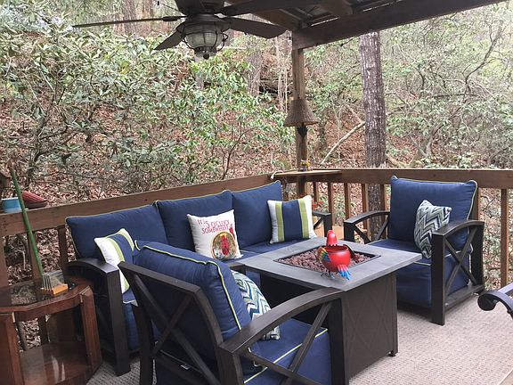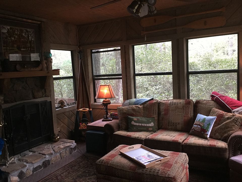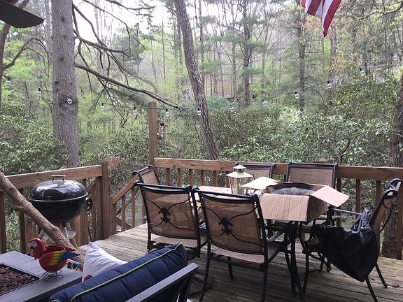 BEAUTIFUL CARTECAY RIVER FRONTAGE - Easy access to the water and located on a beautiful stretch of river. Put your kayak or inter tubes in from your backyard and make your way to the Stegall Mill Falls. Affordable and great weekend cabin, with cedar siding, a wide private lot with 106 feet of river frontage, and lots of windows overlooking the river. There are two bedrooms and two sleeping lofts and the cabin will sleep 8. Wonderful outdoor area where you can sit and listen to the river roll by. Located in a lovely gated community with paved roads, not far from town. Being updated with new appliances, flooring, walls & ceilings.