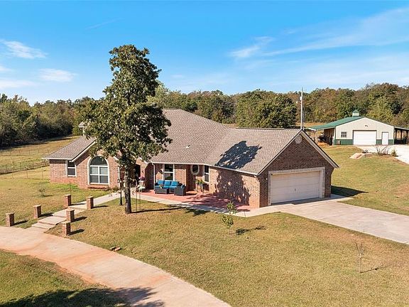 Tucked away on five private acres, this beautifully updated home captures the best of peaceful, country living. From the sweeping circle drive and front pond to the expansive front patio, every detail invites you to slow down and enjoy the view. Inside, a light-filled open floor plan combines comfort and sophistication. The chef’s kitchen serves as the heart of the home, featuring granite countertops, a new designer backsplash, stainless appliances, and a convenient pot filler. Spacious living and dining areas flow seamlessly together, creating the perfect setting for both everyday living and effortless entertaining. All four bedrooms are located on the main level, with a bonus room upstairs that’s ideal for a media space, home office, or private retreat. Out back, your own private oasis awaits. A covered patio overlooks the sparkling pool and hot tub, surrounded by open skies and unforgettable Oklahoma sunsets. Beyond the backyard, a barn/workshop offers room for projects or storage, and abundant wildlife add to the property’s peaceful, natural setting. Located within the Little Axe School District, this home offers the perfect balance of style, comfort, and space, just a short drive from Norman and the Oklahoma City metro. Don’t miss the chance to make this serene acreage retreat your own - schedule your private tour today!