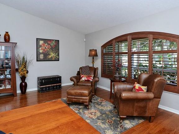 AWC - Taking Backup Offers Wow! What a find! This charming, Lakefront beauty will make you feel right at home. Warm Wood Flooring. Soothing Palette of colors and Soaring Ceilings throughout. Updated kitchen with thermafoil White Cabinetry, Quartz Top counters in soft tones, newer appliances and fixtures. The bathrooms have some important updates with newer vanities and toilets. A split bedroom floor plan; the master has an enormous walk-in closet; Plantation Shutters & Wood flooring. From the Dining Room or Family Room, walk out thru the French Doors to get out on your oversized Lanai where you can look down the Lake and enjoy the waters, hear the birds sing and feel yourself unwind and relax. A fire pit to sit around with friends and an outside patio to place your grill completes this lovely picture. One look and you will say "I am home".