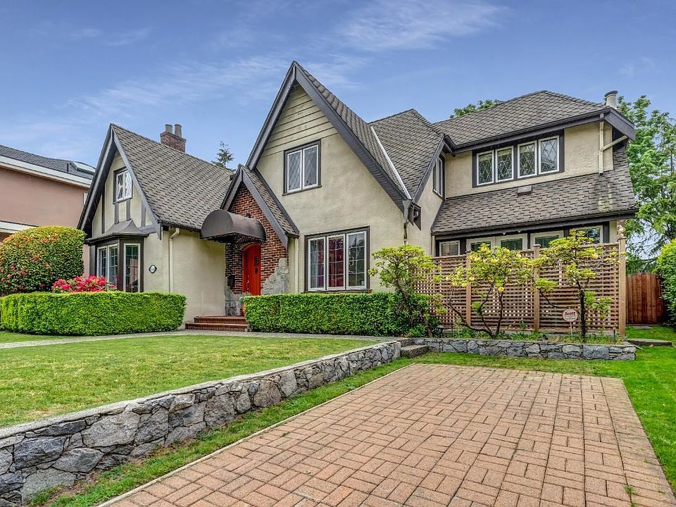 A stunning Tudor Revival residence seamlessly blends historic character w/ modern convenience. Boasting 5 bdrms & 5 bthrms, the home welcomes you w/ original, hand-crafted hardwood floors, & timeless craftsmanship. Expansive living spaces incl both formal living & dining room, chef’s kitchen w/ oversized island, Sub-Zero fridge, double ovens & gas range opens effortlessly to over 400+ sf of patio, perfect for al fresco dining. Upstairs, 3 bedrooms await, incl the sumptuous primary suite. Your private retreat features lavish walk-in closet w/ handy built-ins, Juliet balcony overlooking the garden, & spa-inspired ensuite complete w/ marble counter, w/ jetted soaker tub, rain shower, heated floors & towel rack. Prime Kerrisdale location steps from boutique shops, eateries, & golf courses.