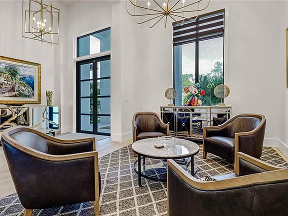 4+Den, 4 Bath, 1 Half Bath, Lanai Area-1,634 SF Features a Master Suite with Her/His Walking closet, Linen Closet, Vanity, Fire Place, Tub, Two Head Shower, Rain Shower, Private Entrance to the Covered Patio, With another Fireplace, Three car garage, Study Room. Home boasts Impact windows and doors with Electric Shutters, Double front door Features 20' Ceilings. Family Room 13' Ceilings with Gas Fireplace, Formal Dining Room, Interior Wet Bar and Powder Room, Utility Room with mudroom, Kitchen with Walking Pantry. Stainless Steel appliances and quartz countertops throughout; including bathrooms. Outdoor kitchen with Double Sink and Grill , along with a beautiful outdoor living space that backs up to the woods for complete privacy.