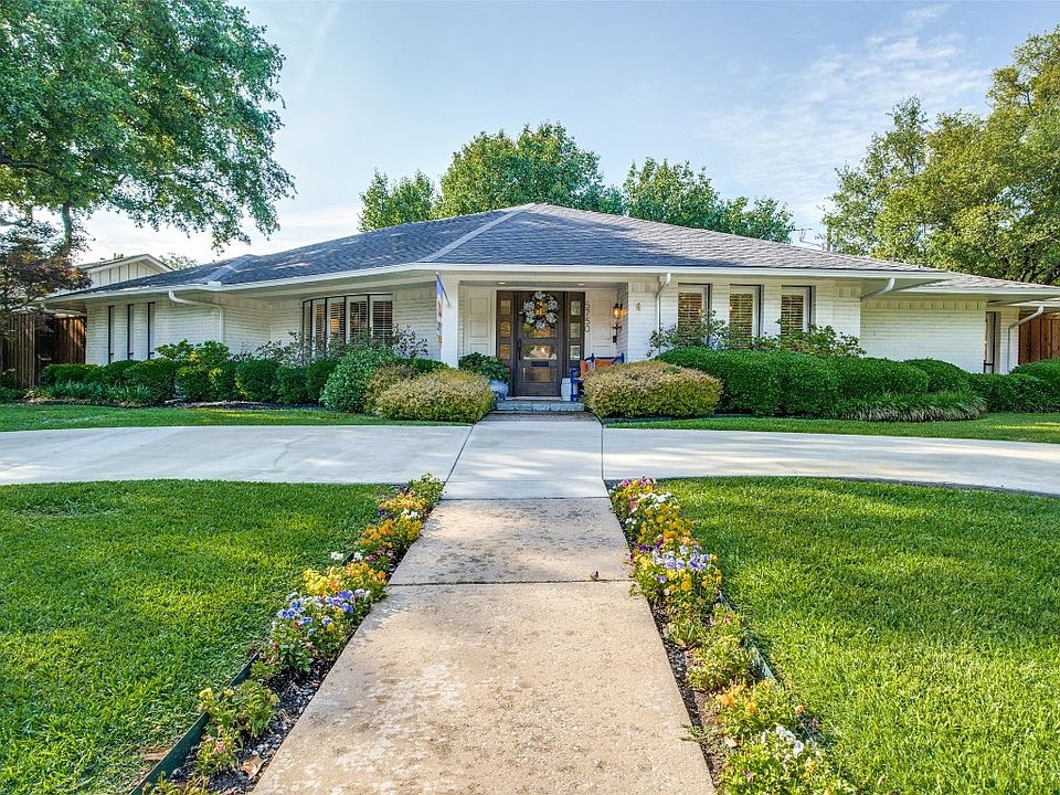 Updated and exceptional one-story brick home is in coveted Devonshire! Move-in ready with incredible recent updates, both inside and outdoors, this residence provides wonderful living and entertaining. All baths and kitchen have been updated. The center foyer opens to dining and two living areas, one with vaulted beamed ceiling, hardwoods, fireplace with marble surround, and outdoor views. The cook's kitchen with quartz counters, stainless appliances, custom pantry, mosaic tile backsplash & breakfast room. Primary suite is spacious with a recently gutted and renovated bath with luxurious finishes and expanded walk-in primary closet. Outside updates include concrete circular drive, landscaping, stone and crushed granite front walkway accents, mahogany front door, turfed back yard, built-in Weber grill, patio with stamped colored concrete, and newer concrete driveway and electric gate. Minutes from Tollway, Park Cities & Downtown, you'll love living in this most desirable neighborhood.