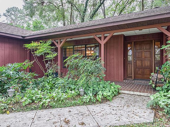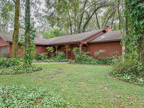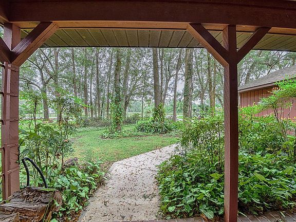 Love Living in the country but, want to be close to town? This is a Win /Win! A Beautiful half acre lot with Ocala Charm. Large Trees and Lush Landscaping make this home a country paradise. Yet, you are close to everything! Over 1700 Square feet of living space and a 27X8.9 foot lanai. Enter this home and you will immediately fall in love with the open Living/Dining/Kitchen plan and wall to ceiling brick fireplace for you to enjoy the cooler weather. Kitchen has been remodeled with granite counter tops, breakfast bar and SS appliances. Perfect for entertaining friends and family. Owners suite is on one side of home and has french doors out to the very large Lanai. You also have an ensuite bath for complete privacy and a large walk in closet. The other side of home has 2 more bedrooms and a guest bath. Inside laundry is off the garage and is 12.6X7.7, perfect mud room/laundry area. BRAND NEW ROOF put on November 2022. Love the outdoors? This amazing back yard has a Barn workshop with electric, lighting, heating and a loft. Get lost for hours! Completely fenced in, a chicken coop, cement slab for outdoor grilling, and plenty of space for a swing set, pool or fire-pit. This home has endless possibilities. Call and schedule your private tour today.