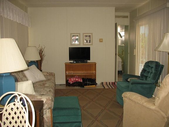 Very nice and clean home with living room open to the kitchen. The guest bedroom in front has its own half bath for privacy. The master bedroom is in the rear of the home and has an attached full bath. This home comes completely furnished and would make a nice winter getaway for someone or could be used as a nice rental property. The HOA fee includes unlimited golf, tennis, pickle ball, shuffleboard, 3 pools, spa, exercise room, trash collection, and a lot more. You own the land!