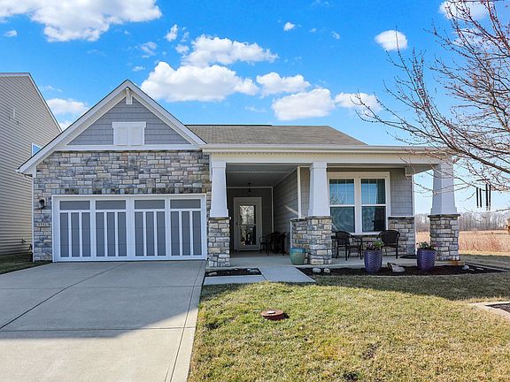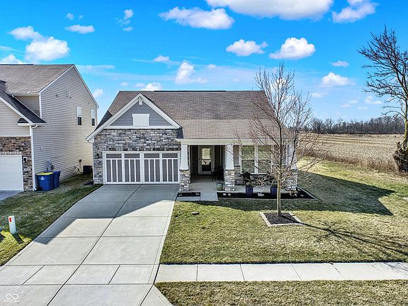 Charming Craftsman-Style Ranch in Walker Farms! Welcome home to active living in Whitetown's highly desirable Walker Farms! This meticulously maintained single-story Craftsman-style ranch is perfectly situated at the end of the road, offering breathtaking backyard sunset views overlooking fields, common spaces, and a peaceful pond in the distance. Step onto the spacious front porch, ideal for relaxing with neighbors or adding your favorite plants. Inside, you'll find a thoughtfully designed layout with two bedrooms and a full bath to the right, while the dining room, sun-filled Great Room, and kitchen await to the left. The Great Room boasts south-facing natural light and a cozy gas log fireplace, making it the perfect place to unwind. The kitchen offers ample counter space for all your culinary needs, as well as an environmentally friendly convection oven/induction stove. The primary suite is a true retreat, featuring a large walk-in closet, room for a private seating area or reading nook, and an en-suite bath with double sinks and a walk-in shower. The fully fenced backyard is ready to become your personal oasis, with an open patio perfect for entertaining or simply soaking in the stunning views. Enjoy all the amenities of Walker Farms just a short walk away - pool, splash pad, playground, tennis, basketball, and pickleball courts, walking trails, and even a dog park! During the summer, you can enjoy the weekly Farmer's Markets & outdoor concerts! Plus, you'll love the easy access to shopping, dining, the new Hussey-Mayfield Library, and I-65. Don't miss your chance to own this beautiful home in a vibrant, amenity-filled community! Schedule your showing today!