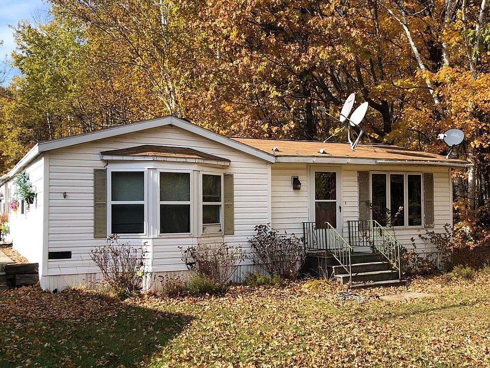 Private 5 acre wooded setting with home and detached 3 car garage offering plenty of storage for your vehicles and toys. Manufactured home features three bedrooms, 2 baths and and an additional cozy family room with gas log fireplace. Lovely shade gardens have been planted and await spring to bring them to life. Garage space is divided into 28 x 36 garage space and 16 x 28 heated workshop. Additional 12 x 16 shed is fully insulated with upstairs storage. This is property is being sold "As Is".