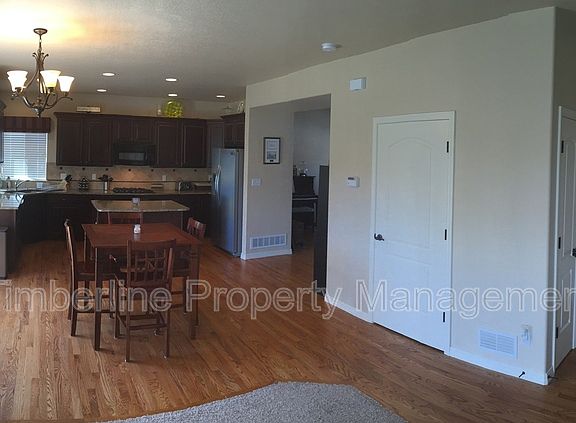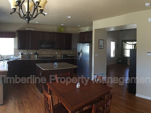 This is a beautiful home in one of the most popular rental communities in District 20 school boundaries. The home features hardwoods on the main level, a beautiful modern kitchen with granite and stainless steel, lofted bonus room or office. There is a family room with gas fireplace adjoining the kitchen with casual dining space. Main floor laundry and a powder bath. Upstairs is 3 bedrooms plus a lofted office, bonus room, play area. The primary bath has a huge soaking tub and separate standing shower. In the finished basement there is a large family room, a very big bedroom and another full bathroom. This home offers central air conditioning, humidifier, large stamped concrete patio in the fully fenced backyard and a beautiful breezeway upstairs that makes the home feel modern and inviting. Wolf Ranch is a wonderful community with open space, clubhouse, and lots of activities that you can choose to be a part of. Great location just off Powers Blvd makes for easy commutes to any of the military installations.