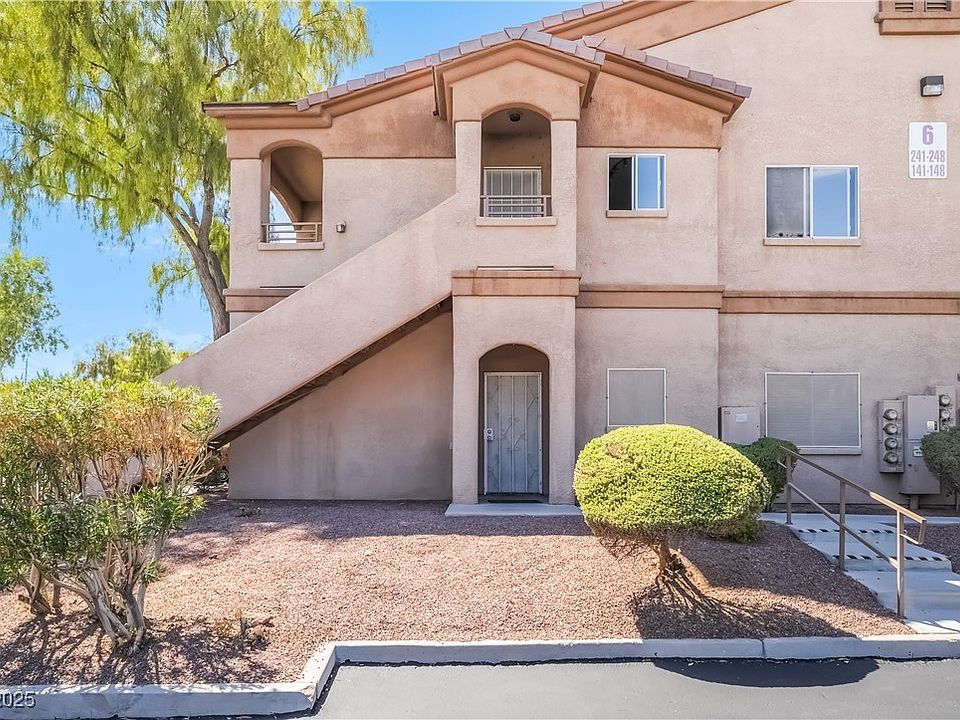 Discover this beautifully maintained 2-bedroom, 2-bath condo located in the gated community. This upstairs unit features an open floor plan with tile flooring throughout, a spacious living area, private balcony with mountain views, and an updated kitchen with breakfast bar. Enjoy resort-style amenities including a pool, fitness center, clubhouse, and dog park. HOA covers water, sewer, and trash. Conveniently located near shops, restaurants, and easy freeway access—move-in ready and perfect for comfortable Las Vegas living!