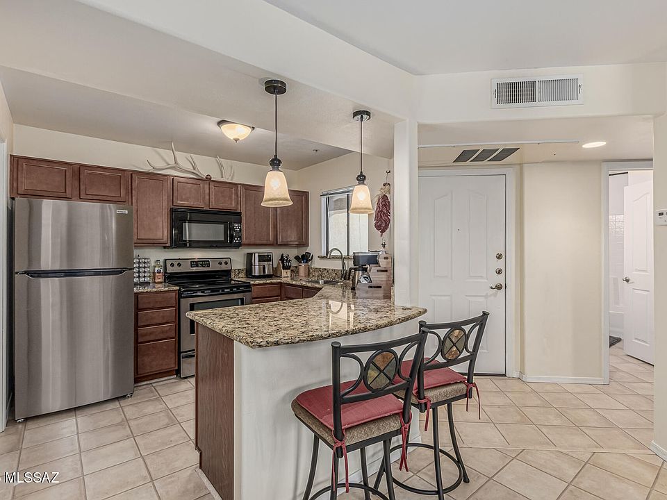Come see this wonderful 2BR unit in the popular Veranda at Ventana Condominiums! Discover a bright & inviting interior boasting an open design with living & dining areas that flow seamlessly. The kitchen features abundant storage, granite countertops, built-in appliances, and a peninsula with a breakfast bar. The primary bedroom has a private balcony with views of the Catalina Mountains. The primary bathroom includes a tub/shower combo. This great condo has a laundry room inside. This gated community offers carport parking, multiple pools, spa, clubhouse, and lush common areas. Wait, there's more! Close to shopping centers, restaurants, golf, and hiking. Don't miss out! Inquire today!