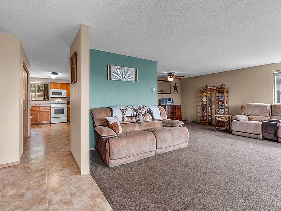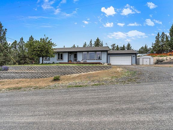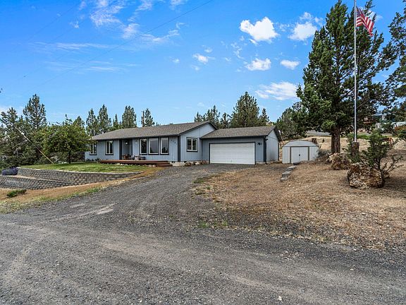 Discover a charming 3 bedroom, 2 bathroom home in Prineville's Ochoco West neighborhood. Situated on a spacious 0.4-acre double lot, this 1,704 sq ft residence features a roomy living area, a cozy coffee nook, new countertops, updated lighting, and a remodeled primary bathroom. Other updates include newer exterior paint, garbage disposal, hot water heater, gutters, hot tub, and a back patio. The double car garage with built-in shelves and two additional 10x12 storage units offer ample storage space. Enjoy community amenities such as access to over 1,200 acres of wilderness, a stocked fishing lake, a shooting range, ATV trails, hiking paths, a pool, and a clubhouse.