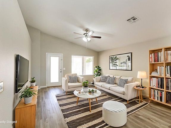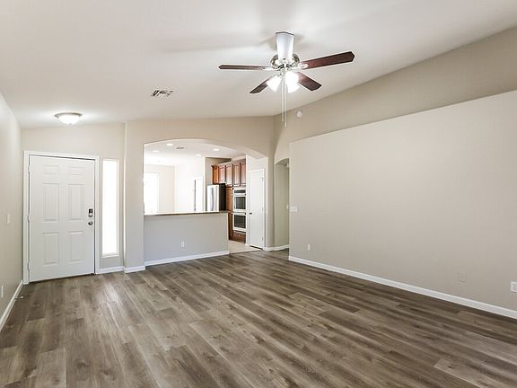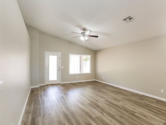 Come see this three-bedroom, two-bathroom Mesa rental home. Enjoy spending time in the living room, where you'll find a vaulted ceiling, overhead fan, and a door that leads to the fenced-in backyard. The kitchen's stainless steel appliances help you prepare delicious meals, while the long countertops and pantry offer plenty of convenience. Have your meals in the dining room while two large windows offer a view of the front yard. In the main bedroom, bay windows let in lots of light, while the high ceiling provides a feeling of spaciousness. The en suite bathroom features dual vanity sinks, and the walk-in closet gives you extra storage space.